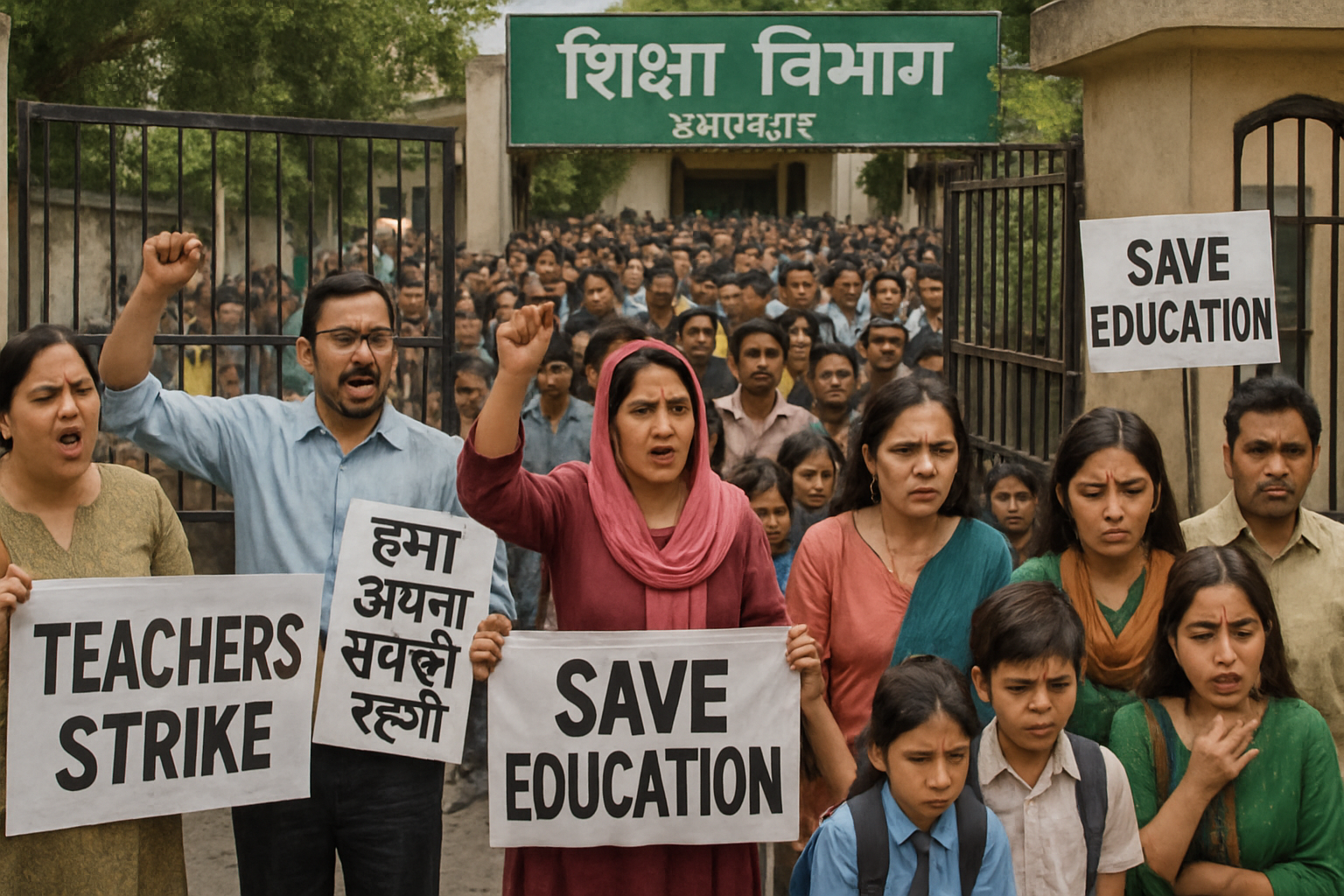 शिक्षक संघ के धरना-प्रदर्शन से छात्रों-अभिभावकों की बढ़ी परेशानी