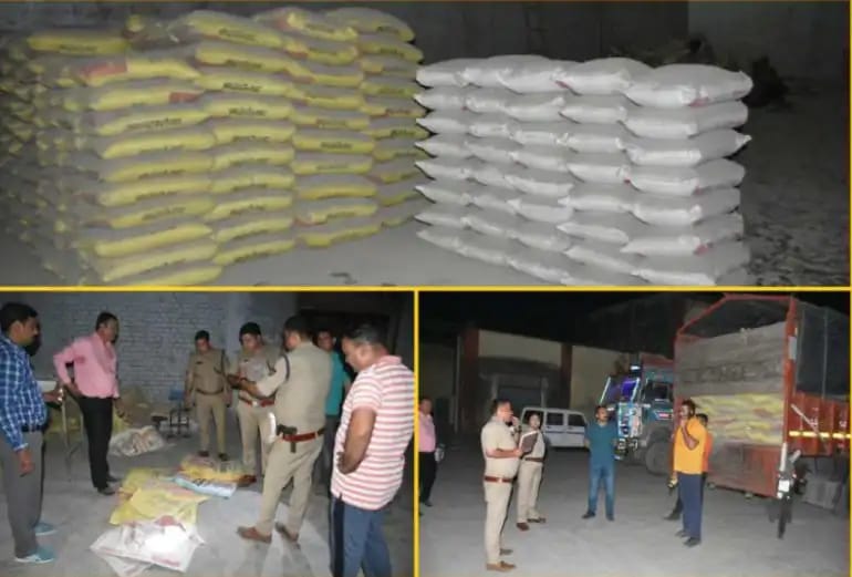 ब्रांडेड कंपनियों की 1250 बोरियां बरामद, सीमेंट से भरे दो ट्रक भी मौके पर थे खड़े