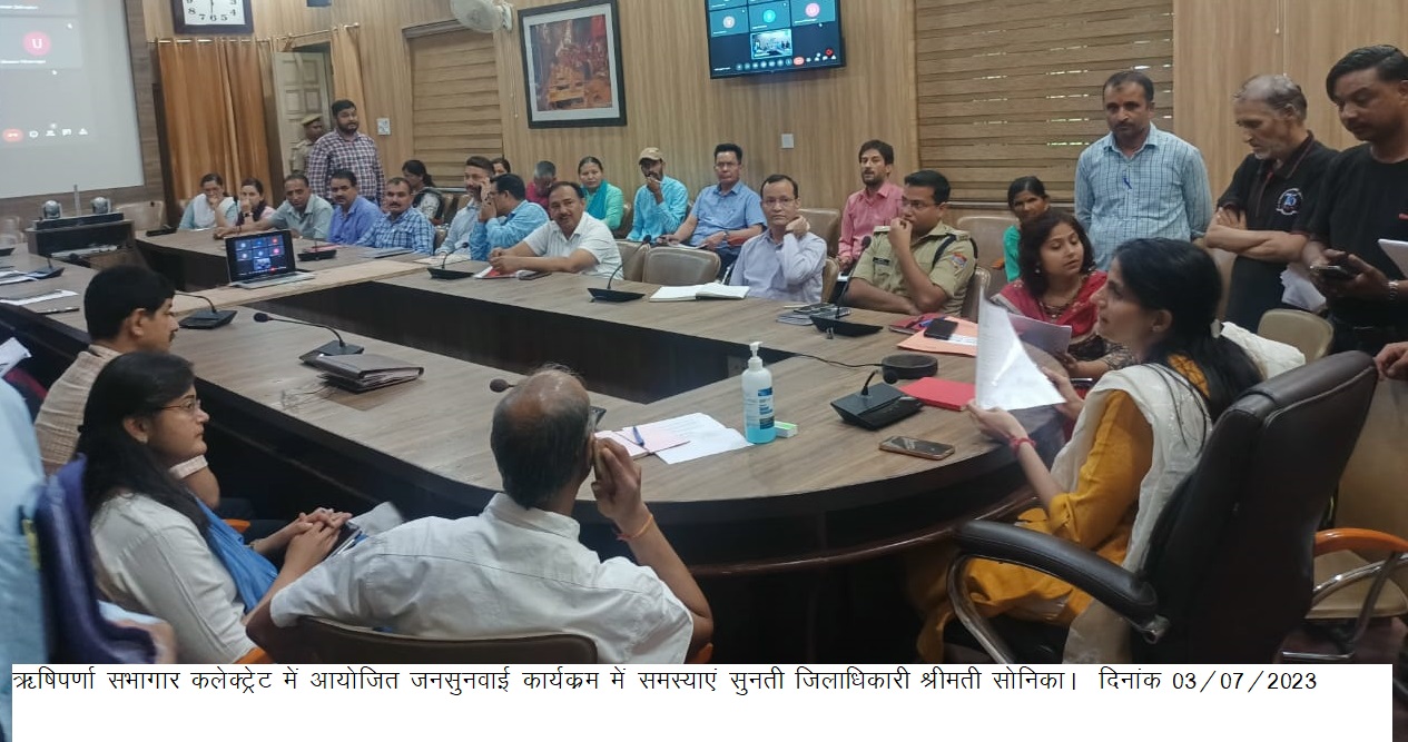 भूमि सम्बन्धी शिकायतों पर सम्बन्धित उप जिलाधिकारियों एवं तहसीलदारों को मौका मुआयना करते हुए आख्या प्रस्तुत करने के निर्देश दिए। नन्दा फार्म में ग्राम समाज की भूमि पर अतिक्रमण की शिकायत पर राजस्व/ वन विभाग के अधिकारियों को संयुक्त निरीक्षण करने के निर्देश दिए। चन्द्रबनी वार्ड निवासियों द्वारा धारावाली, भुत्तोवाला चोईला चन्द्रबनी पट्टीयों, अमर भारती कैलाशपुर पित्थुवाला खुद्र्धावाला विद्युत शिकायतों पर विद्युत विभाग के अधिकारियों को कार्यवाही के निर्देश दिए।