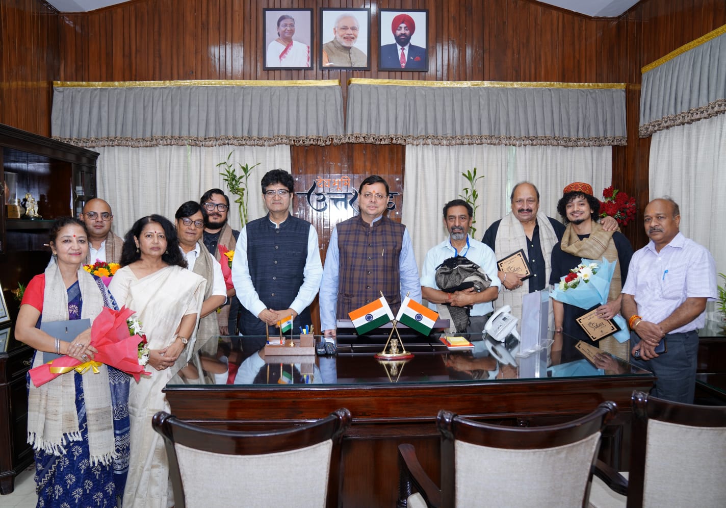 मुख्यमंत्री धामी से मिले केंद्रीय फिल्म प्रमाणन बोर्ड के अध्यक्ष और प्रसिद्ध गीता कार प्रसून जोशी