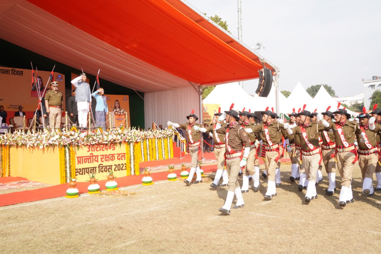 देहरादून : मुख्यमंत्री पुष्कर सिंह धामी ने सोमवार को तपोवन रोड, देहरादून में प्रान्तीय रक्षक दल के स्थापना दिवस के अवसर पर आयोजित रैतिक परेड में शामिल होकर रैतिक परेड का मान प्रणाम ग्रहण किया। इस अवसर पर मुख्यमंत्री ने पीआरडी के घोषवाक्य ‘अहमस्मि योधः’ का लोकार्पण किया और पीआरडी स्वयं सेवकों के आश्रितों को सहायता राशि का वितरण भी किया।