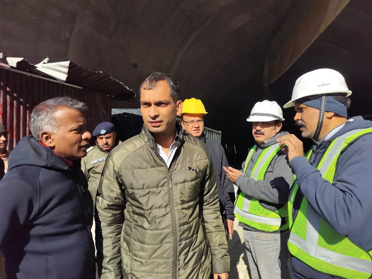 निर्माणाधीन टनल में हुए भू-धंसाव का कर रहे निरीक्षण।