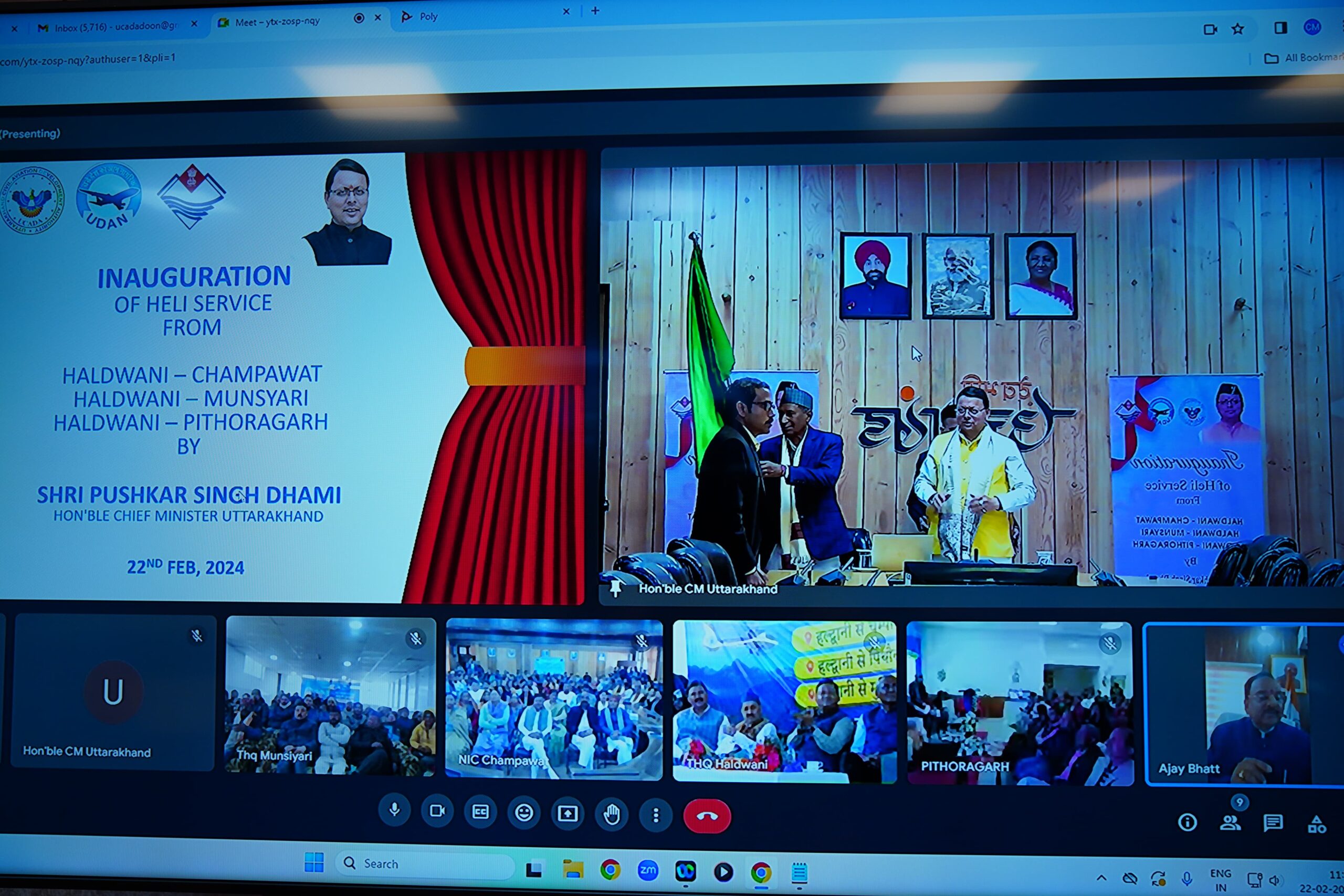 देहरादून : मुख्यमंत्री पुष्कर सिंह धामी ने गुरुवार को मुख्यमंत्री आवास, सभागार में नागरिक उडडयन विभाग द्वारा आयोजित कार्यक्रम में हल्द्वानी से मुनस्यारी, पिथौरागढ़, चम्पावत हेतु क्षेत्रीय कनेक्टिविटी स्कीम के अंतर्गत संचालित की जा रही हैली सेवा का वर्चुअल रूप से फ्लैग ऑफ कर शुभारम्भ किया।
