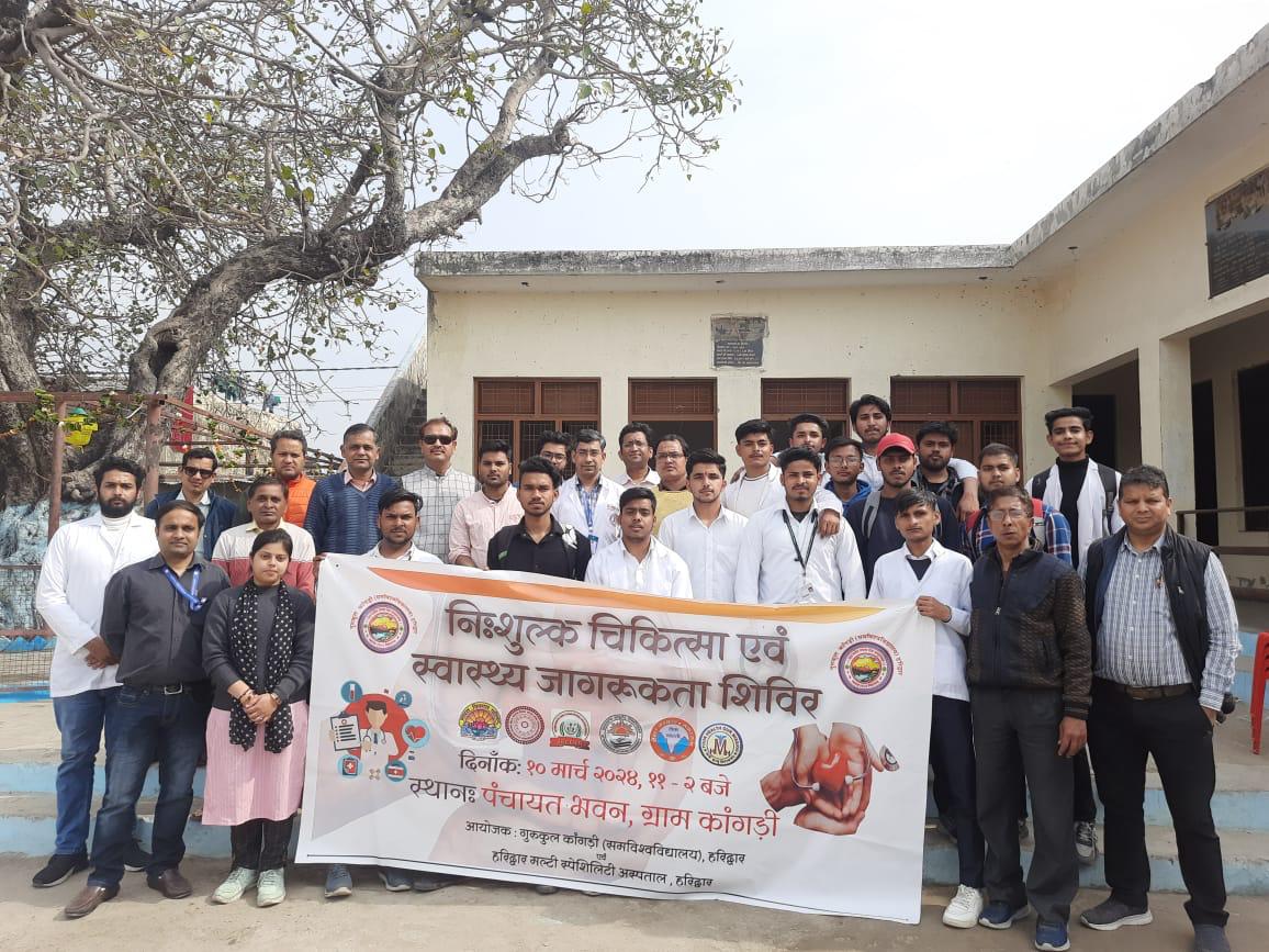 हरिद्वार:(जीशान मलिक) गुरुकुल कांगड़ी संविश्वविद्यालय हरिद्वार के भेषज विज्ञान विभागए हरिद्वार मल्टी स्पेशलिटी हॉस्पिटलए सेवा भारतीए हरिद्वारए भारत विकास परिषद पंचपुरी शाखा एवं जायांग हेल्थ केयर मिशन एंड एजुकेशन सोसाइटी हरिद्वार संयुक्त तत्वाधान में श्यामपुर कांगड़ी गांव के पंचायत भवन में चिकित्सा एवं स्वास्थ्य जागरूकता शिविर का आयोजन किया गया.