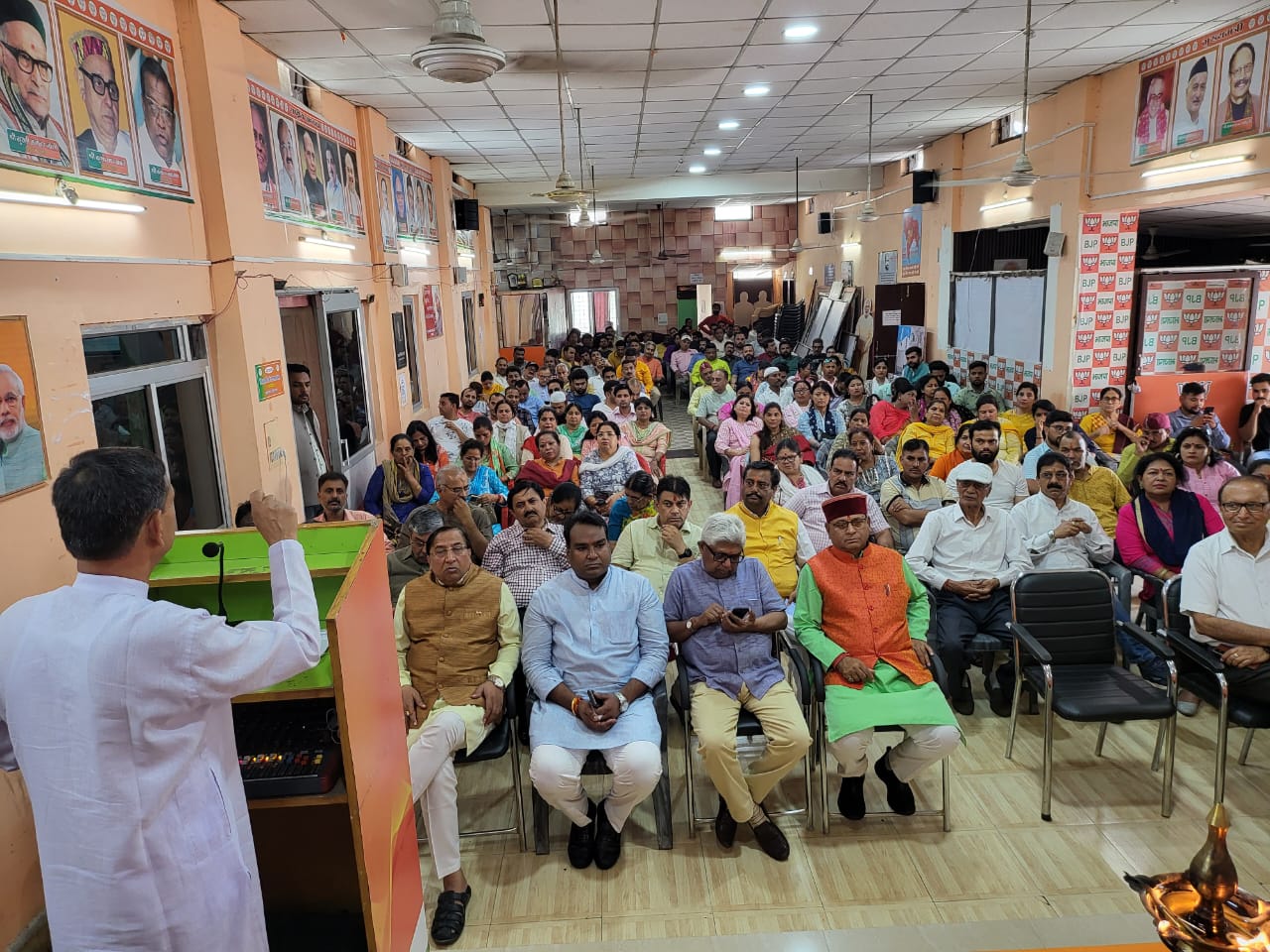 कार्यक्रम में मुख्य अतिथि प्रदेश महामंत्री भाजपा आदित्य कोठारी ने डॉ श्यामा प्रसाद मुखर्जी को याद करते हुए कहा कि डॉ श्यामा प्रसाद मुखर्जी जनसंघ के संस्थापक रहे जब देश आजाद हुआ। डॉ श्यामा प्रसाद मुखर्जी को नेहरू जी कैबिनेट में मंत्री का दायित्व मिला परंतु कुछ ही समय बाद श्यामा प्रसाद मुखर्जी ने देश की तत्कालीन परिस्थितियों को देखते हुए अपना इस्तीफा दिया और कश्मीर में दो निशान दो विधान और दो प्रधान ना मानते हुए इस बात का खंडन करना और कहा कि कश्मीर भी हमारे देश का हिस्सा है। इसलिए मुखर्जी ने आंदोलन करते हुए कश्मीर में बिना परमिट के प्रवेश किया और वहां की सरकार ने उनको गिरफ्तार किया उनको जेल में रखा गया और कई प्रकार की यातनाएं झेली आज हम लोगों को उनके इस बलिदान को याद रखना चाहिए जो उन्होंने संघर्ष किया था उन्हीं के सिद्धांतों पर आज भारतीय जनता पार्टी चल रही है।