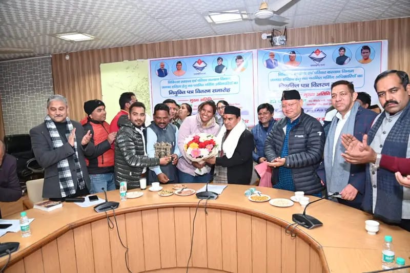 हरिद्वार। मंत्री चिकित्सा स्वास्थ्य एवं चिकित्सा शिक्षा, सहकारिता, उच्च शिक्षा, विद्यालयी शिक्षा एवं संस्कृत शिक्षा डॉ0 धन सिंह रावत ने शनिवार को मेला नियंत्रण भवन(सीसीआर) में चिकित्सा स्वास्थ्य एवं परिवार कल्याण विभाग द्वारा नव चयनित नर्सिंग अधिकारियों के लिए आयोजित नियुक्ति पत्र वितरण समारोह में प्रतिभाग किया। उन्होंने इस मौके पर जनपद हरिद्वार के लिये नव-चयनित नर्सिंग अधिकारियों-रेचल ब्राउनिंग, शकुन्तला आदि को नियुक्ति पत्र सौंपे।