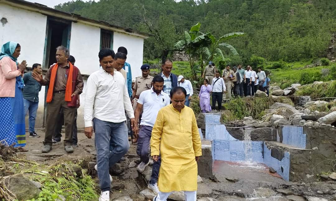 आपदाग्रस्त क्षेत्र निरीक्षण के दौरान उपजिलाधिकारी श्रीनगर नूपुर वर्मा, थलीसैंण मंडल अध्यक्ष नवीन जोशी, यूसीबी पूर्व अध्यक्ष मातबर सिंह रावत, सहित ग्रामीण उपस्थित थे।