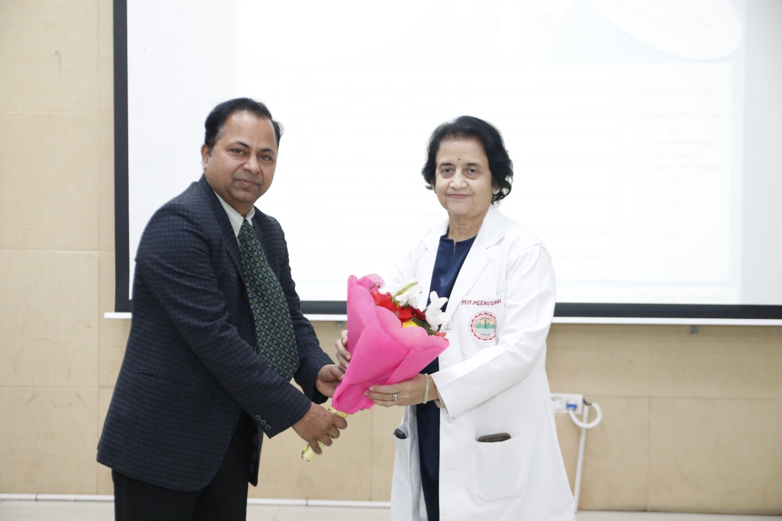 इस अवसर पर फार्माकोलॉजी विभाग के प्रमुख डॉ. शैलेन्द्र हांडू, कॉलेज ऑफ नर्सिंग की प्राचार्य प्रो. स्मृति अरोड़ा, जिरियाट्रिक मेडिसिन की प्रमुख प्रोफेसर प्रो. मीनाक्षी धर, नेत्र रोग विभाग के प्रमुख प्रो. संजीव कुमार मित्तल, डीएमएस डॉ. भारत भूषण, डॉ. अंबर प्रसाद, डॉ. वान्या सिंह, डॉ. वेंकटेश पई, फार्माकोलॉजी विभाग की डॉ. मनीषा बिष्ट, प्रो. बलराम जी उमर, मुख्य नर्सिंग अधिकारी रीता शर्मा, आयोजन सचिव एवं नर्सिंग फेकल्टी डॉ. मनीष शर्मा, विभिन्न विभागों के एसआर, जेआर, डीएनएस, एएनएस, नर्सिंग अधिकारी आदि स्वास्थ्य देखभाल कार्यकर्ता उपस्थित थे।