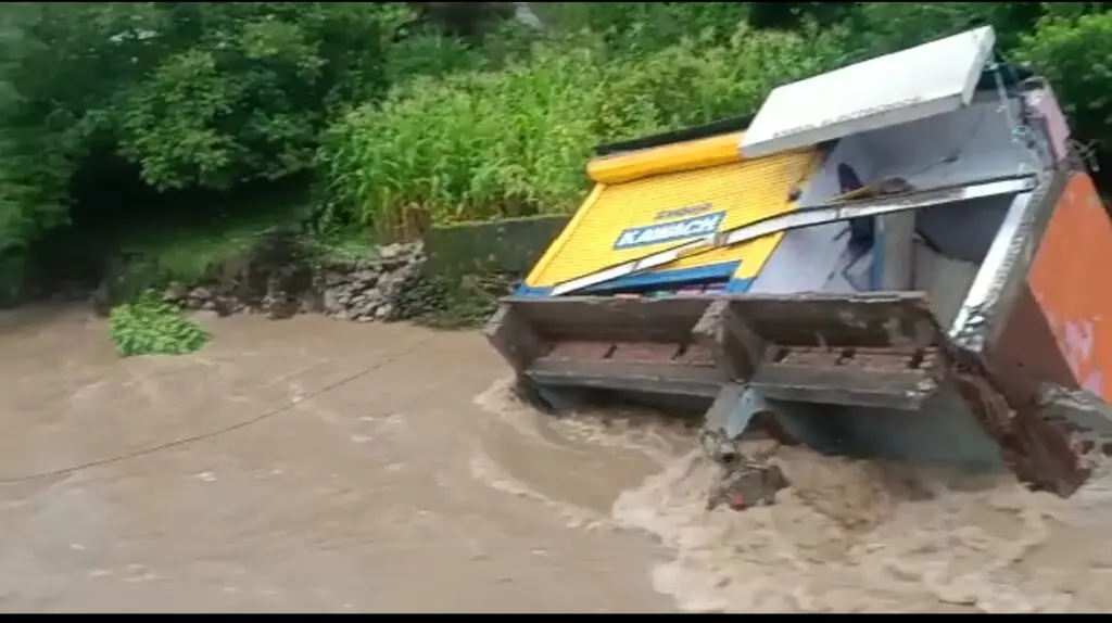 उत्तराखंड में बारिश का कहर जारी है। देर रात हुई बारिश ने उत्तरकाशी में भारी तबाही मचाई है। भारी बारिश के कारण उत्तरकाशी में बाढ़ जैसे हालत हो गए हैं। जिसके चलते उत्तरकाशी में कई दुकानें बह गई हैं। बारिश के पानी में पीएनबी बैंक का एटीएम और एटीएम में डाला गया 24 लाख कैश भी बह गया।