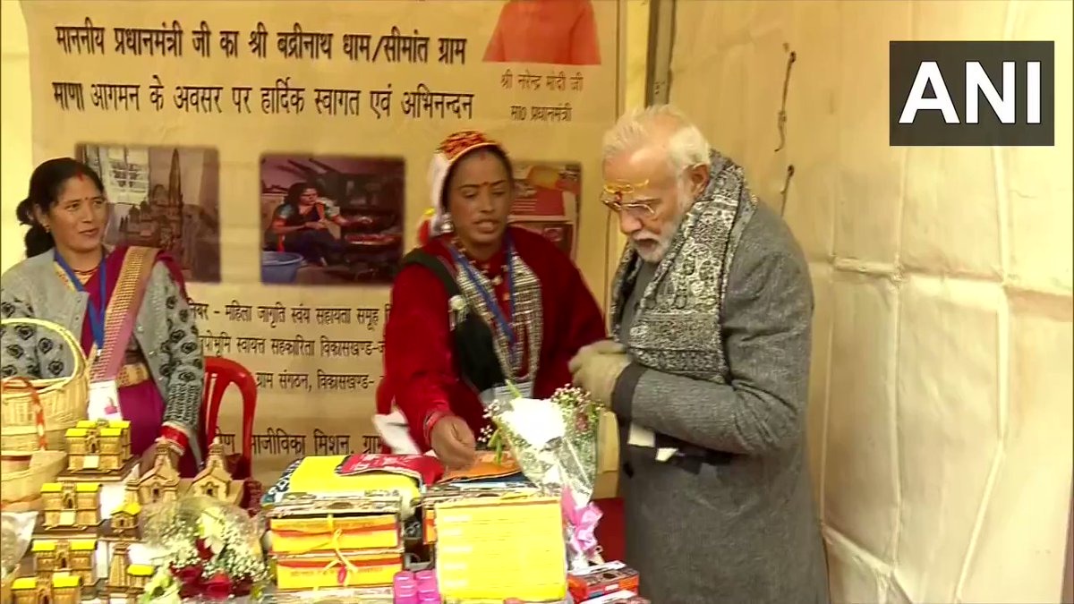 प्रधानमंत्री मोदी चीन सीमा पर स्थित भारत के अंतिम गांव माणा मे है।उन्होने वहा एक जनसभा संबोधित करी उसके बाद वह माणा के सरस मेले में शामिल हुए। जहां उन्होंने लोकल उत्पाद के साथ-साथ स्थानीय संभावनाओं का भी जायजा लिया। वीडियो में देखा जा सकता है कि कैसे प्रधानमंत्री अपने खास अंदाज में मेले में दुकान लगाने वालों से बात कर रहे हैं।