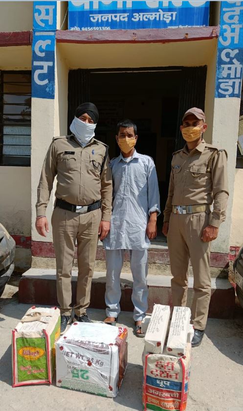 अल्मोड़ा जिले के भर अवैघ मादक पदार्थों की तस्करी का चेकिंग अभियान जिले भर में जारी है। वहीं अल्मोड़ा के विकास खंड सल्ट में पुलिस उपाधीक्षक ऑपरेशन सुश्री ओशीन जोशी के नेतृत्व में थाना सल्ट पुलिस ने एक अभियुक्त को तीन पेटी अवैध अंग्रेजी शराब के साथ दबोचा।