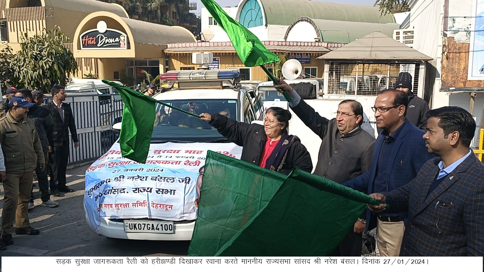 सड़क सुरक्षा रैली राज्यसभा सांसद नरेश बंसल द्वारा होटल द्रोण से हरी झण्डी दिखाकर रवाना