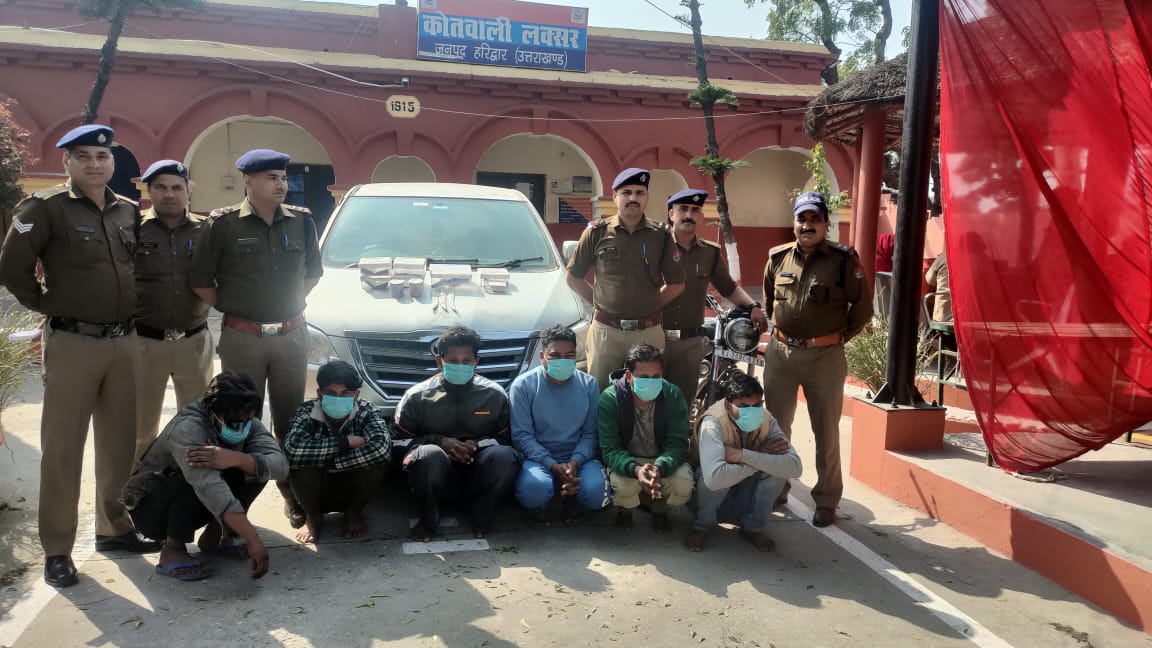 1. कन्हैया पुत्र चतर सिंह निवासी अलाउद्दीनपुर थाना झिंझाना जनपद शामली उत्तर प्रदेश हाल निवासी झुग्गी झोपड़ी बस्ती भीमगोडा पार्किंग कोतवाली नगर हरिद्वार 2. हैप्पी पुत्र स्व0 शेरा सिंह निवासी अहमदगढ़ थाना झिंझाना जनपद शामली उत्तर प्रदेश हाल निवासी टीब्बा रोड, गली नंबर 1 गोपाल नगर लुधियाना पंजाब 3. इतवारी पुत्र चतर सिंह निवासी ग्राम अलाउद्दीन पुर थाना झिंझाना जिला शामली उत्तर प्रदेश हाल निवासी झुग्गी झोपड़ी भीमगोड़ा पार्किंग कोतवाली नगर हरिद्वार 4. ऋषि पुत्र साबिर निवासी ग्राम खोख्सा थाना झिंझाना शामली उ०प्र० हाल निवासी धनपुरा थाना पथरी हरिद्वार 5. राजू पुत्र तनिया निवासी अलाउद्दीनपुर थाना झिंझाना शामली जनपद शामली हाल निवासी झुग्गी झोपड़ी भीमगोड़ा पार्किंग हरिद्वार 6. अर्जुन पुत्र सुरेश निवासी गड्ढा पार्किंग निकट अलकनंदा होटल रोड़ी बेलवाला कोतवाली नगर हरिद्वार