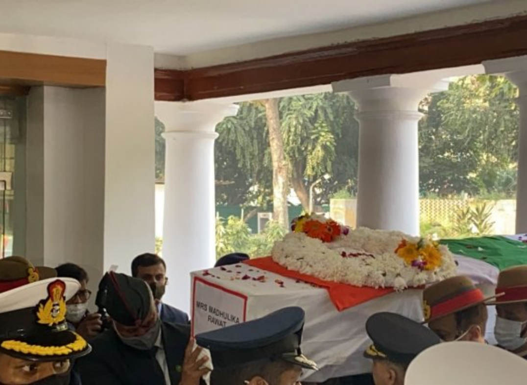 सीडीएस जनरल बिपिन रावत और उनकी पत्नी मधुलिका रावत का आज शाम चार बजे दोनों का पूरे सैन्य सम्मान के साथ उनका अंतिम संस्कार किया जाएगा। वहीं उनका पार्थिव शरीर उनके आवास पर लाया गया जिसमें गृह मंत्री अमित शाह ने उनको सीडीएस बिपिन रावत और उनकी पत्नी मधुलिका रावत को श्रध्दांजलि अर्पित की साथ ही उनके अंतिम दर्शन के लिए कांग्रेस नेता राहुल गांधी ने उनके आवास पर पहुंच कर उन्हें श्रध्दांजलि दी।
