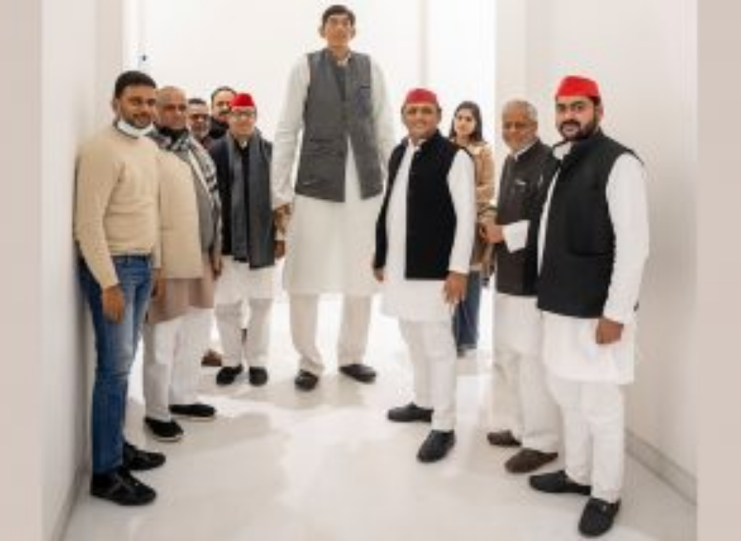 समाजवादी पार्टी ने बीते दिन देश के सबसे लंबे कद के व्यक्ति को अपनी पार्टी में शामिल करा दिया प्रतापगढ़ के रहने वाले धर्मेंद्र प्रताप सिंह की लंबाई आठ फुट दो इंच है वे सपा अध्यक्ष अखिलेश यादव की मौजूदगी में पार्टी में शामिल हुए। धर्मेंद्र प्रताप ने कहा कि सपा की नीतियों से मैं प्रभावित हूं और अखिलेश यादव के नेतृत्व में पूरा भरोसा है इसलिए मैंने पार्टी की सदस्यता ली है।