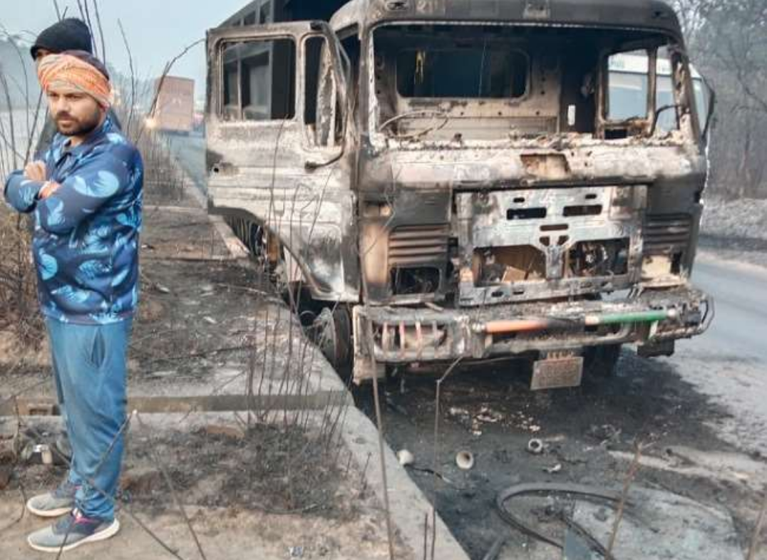 बिहार-झारखंड सीमा पर गैस भरा टैंकर पलटा हादसे में तीन लोगों मौत