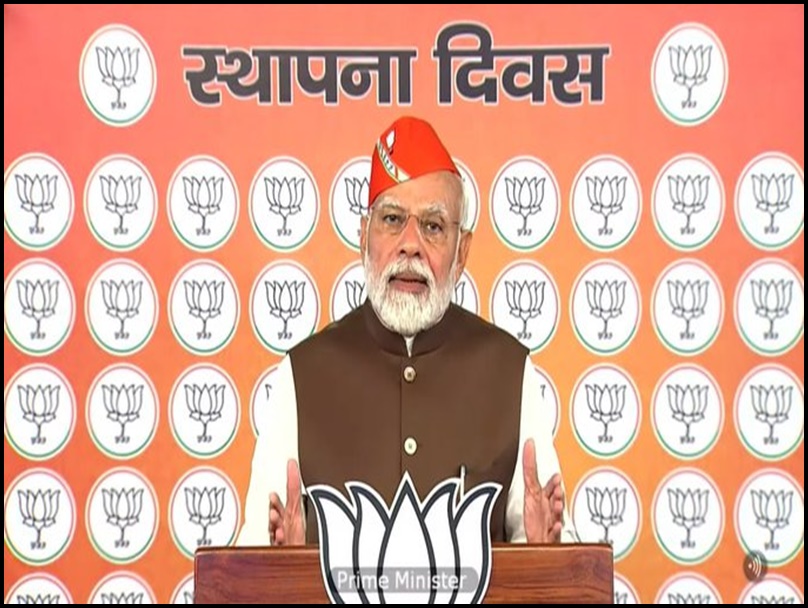 आज स्थापना दिवस के मौके पर बीजेपी के राष्ट्रीय अध्यक्ष जेपी नड्डा ने दिल्ली में पार्टी मुख्यालय में झंडा फहराया । जिसके बाद पीएम मोदी ने पूरे देश भर में स्थित अपने कार्यकर्ताओं को संबोधित किया । इस दौरान पीएम मोदी ने कहा कि बीजेपी सबके साथ ,सबके विकास वाली है ,और यह सबके विश्वास पर काम करती है। पीएम मोदी ने कहा कि बीजेपी के लिए राष्ट्र सर्वोपरि है। उन्होंने कहा कि भाजपा जनहित के लिए कार्य करती है । साथ ही पीएम मोदी ने विपक्ष पर निशाना साधते हुए कहा कि नफरत से भरे लोग आज झूठ बोले जा रहे हैं । ये लोग हतास से भर गये हैं । ये लोग इतने निराश हो गये हैं कि अब वो खुलकर बोलने लगे हैं कि मोदी मोदी तेरी कब्र खुदेगी. वो कब्र खोदने लगे हैं । मगर वो एक चीज नही जानते है कि आज देश का गरीब, युवा, माताएं, बहने, दलित, आदिवासी हर कोई बीजेपी के कमल को खिलाने के लिए ढाल बनकर खड़ा है ।