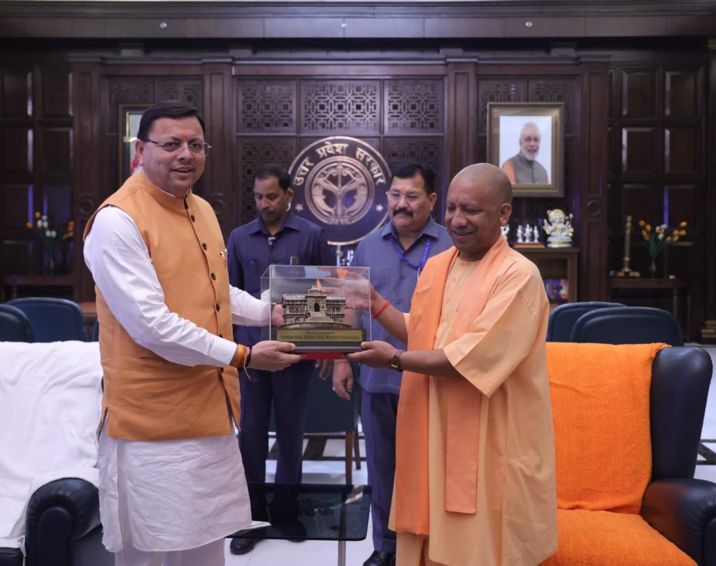 मुख्यमंत्री पुष्कर सिंह धामी ने मंगलवार को लखनऊ में उत्तर प्रदेश के मुख्यमंत्री योगी आदित्यनाथ से शिष्टाचार भेंट की। इस अवसर पर उन्होंने प्रभु बदरी विशाल जी की प्रतिमा और प्रदेश में उत्पादित आन से बने उत्पाद उपहार स्वरूप प्रदान किए। मुख्यमंत्री ने उत्तर प्रदेश के मुख्यमंत्री से उत्तराखण्ड एवं उत्तर प्रदेश के मध्य आस्तियों एवं दायित्वों के विभाजन संबंधी विभिन्न विषयों पर भी चर्चा की।