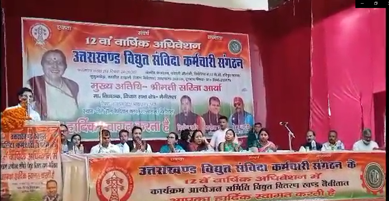 नैनीताल में आज उत्तराखंड राज्य विधुत संविदा कर्मचारी संगठन कर्मचारी 12वां वार्षिक अधिवेशन आयोजित किया गया। इस दौरान कर्मचारियों ने अपने -अपने विचार व्यक्त किए। अधिवेशन में विधुत कर्मचारियों ने अपनी लंबित मांग स्थानीय विधायक के माध्यम से सरकार के सम्मुख रखी।
