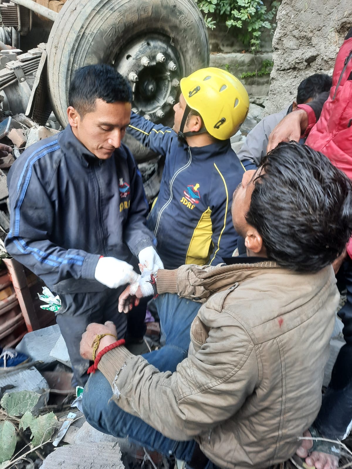 SDRF टीम द्वारा घटनास्थल पर पहुँचकर त्वरित कार्यवाही करते हुए ट्रक में फंसे एक व्यक्ति को कड़ी मशक्कत करते हुए सकुशल बाहर निकाला जबकि अन्य सवार को पूर्व में ही निकाल लिया गया था।