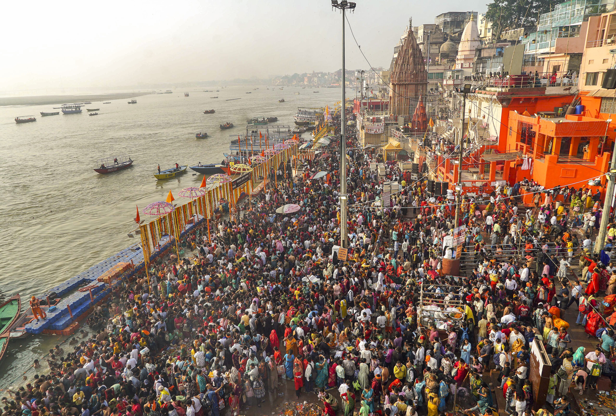 पर घाटों पर भक्तों ने लगाई आस्था की डुबकी,