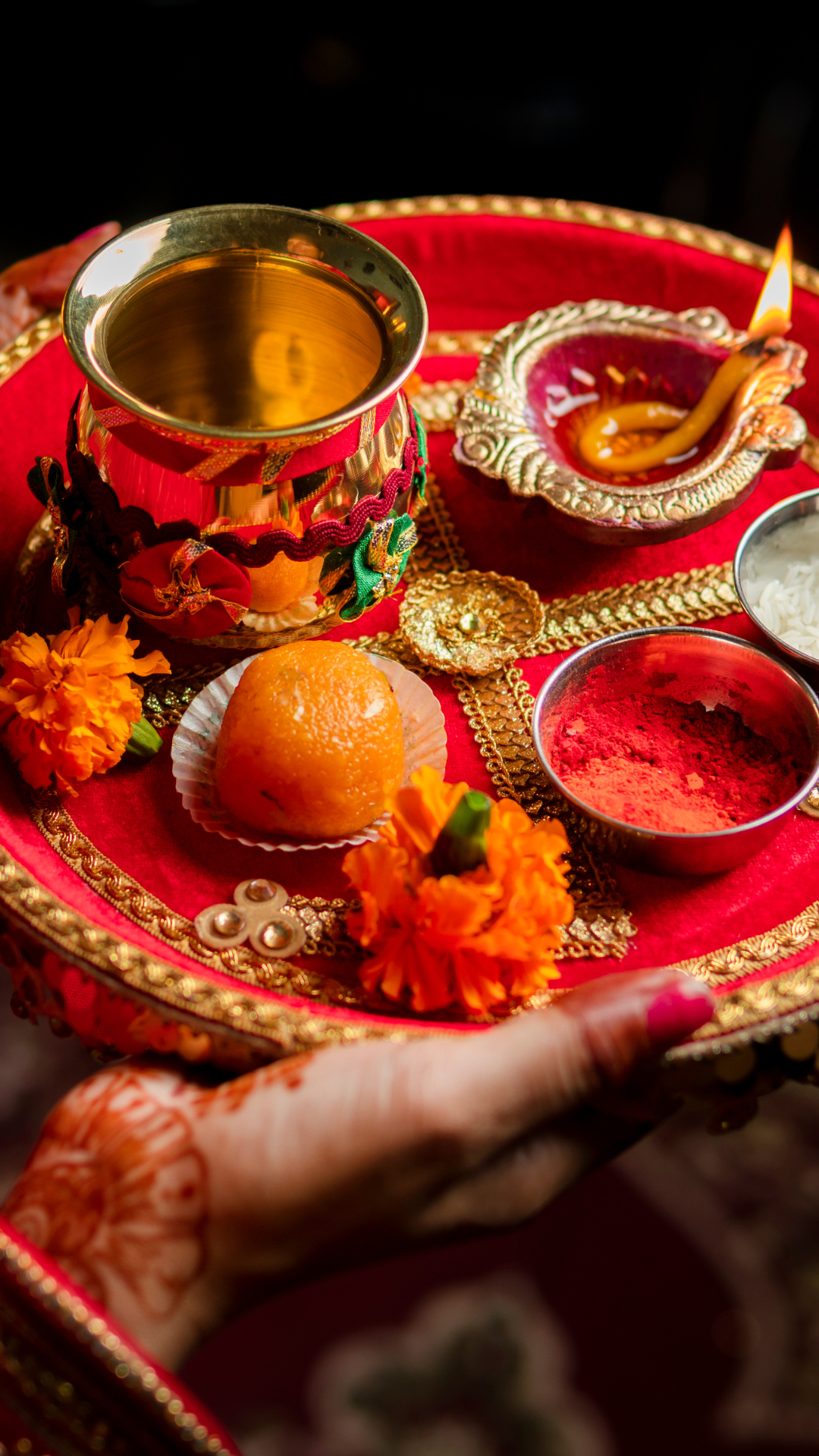 करवा चौथ के दिन महिलाएं प्रातः स्नान करके व्रत का संकल्प लेती हैं और पूरे दिन निर्जला व्रत करती हैं।