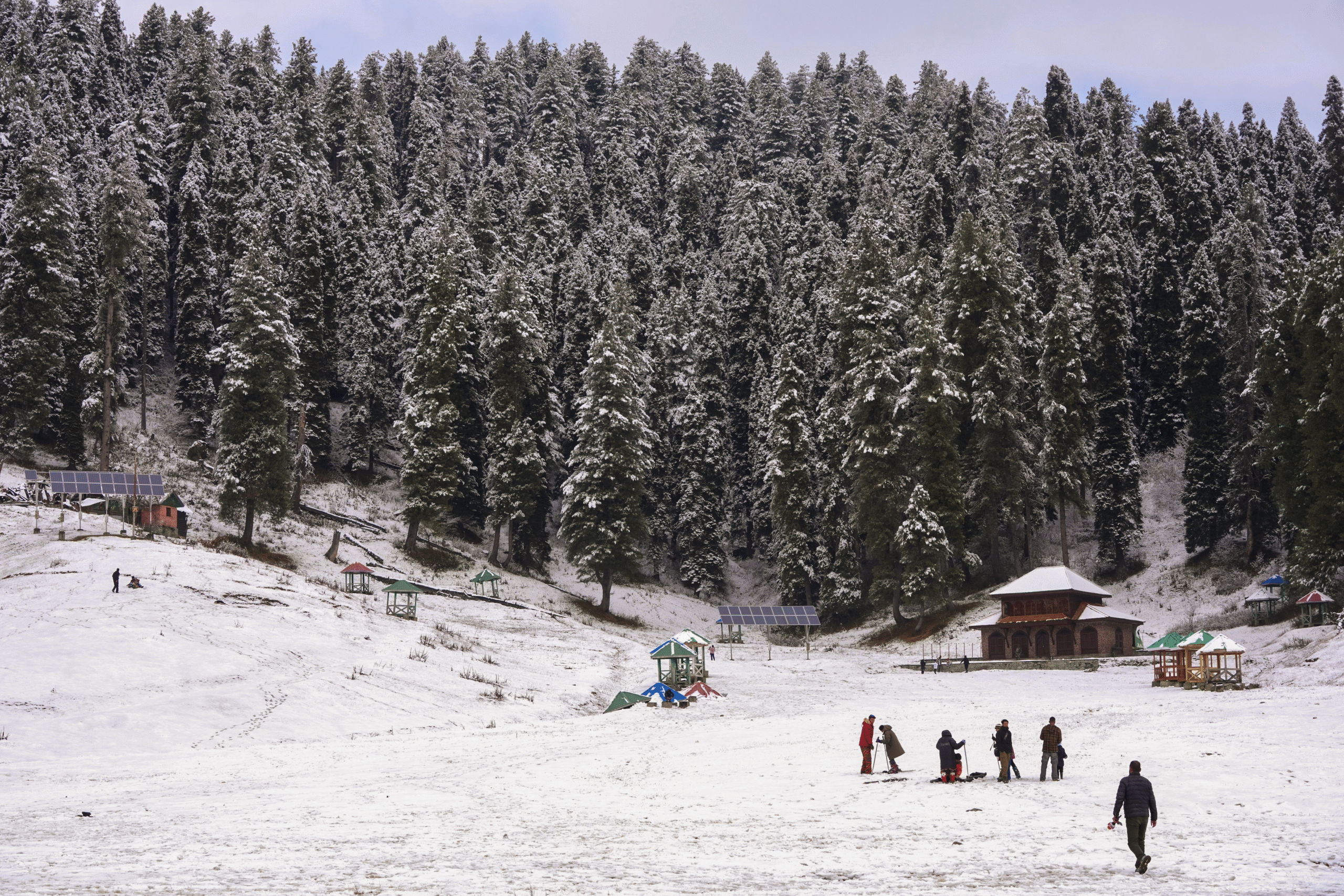 बारामुला जिले में स्थित गुलमर्ग में पहली बड़ी बर्फबारी ने वादियों को 'व्हाइट वंडरलैंड' में बदल दिया है।