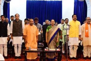 उत्तर प्रदेश: योगी आदित्यनाथ ने लगातार दूसरी बार उत्तर प्रदेश के मुख्यमंत्री पद की शपथ ग्रहण की। राज्यपाल आनंदीबेन पटेल ने उन्हें लखनऊ के अटल बिहारी वाजपेयी इकाना क्रिकेट स्टेडियम में मुख्यमंत्री पद की शपथ दिलाई।